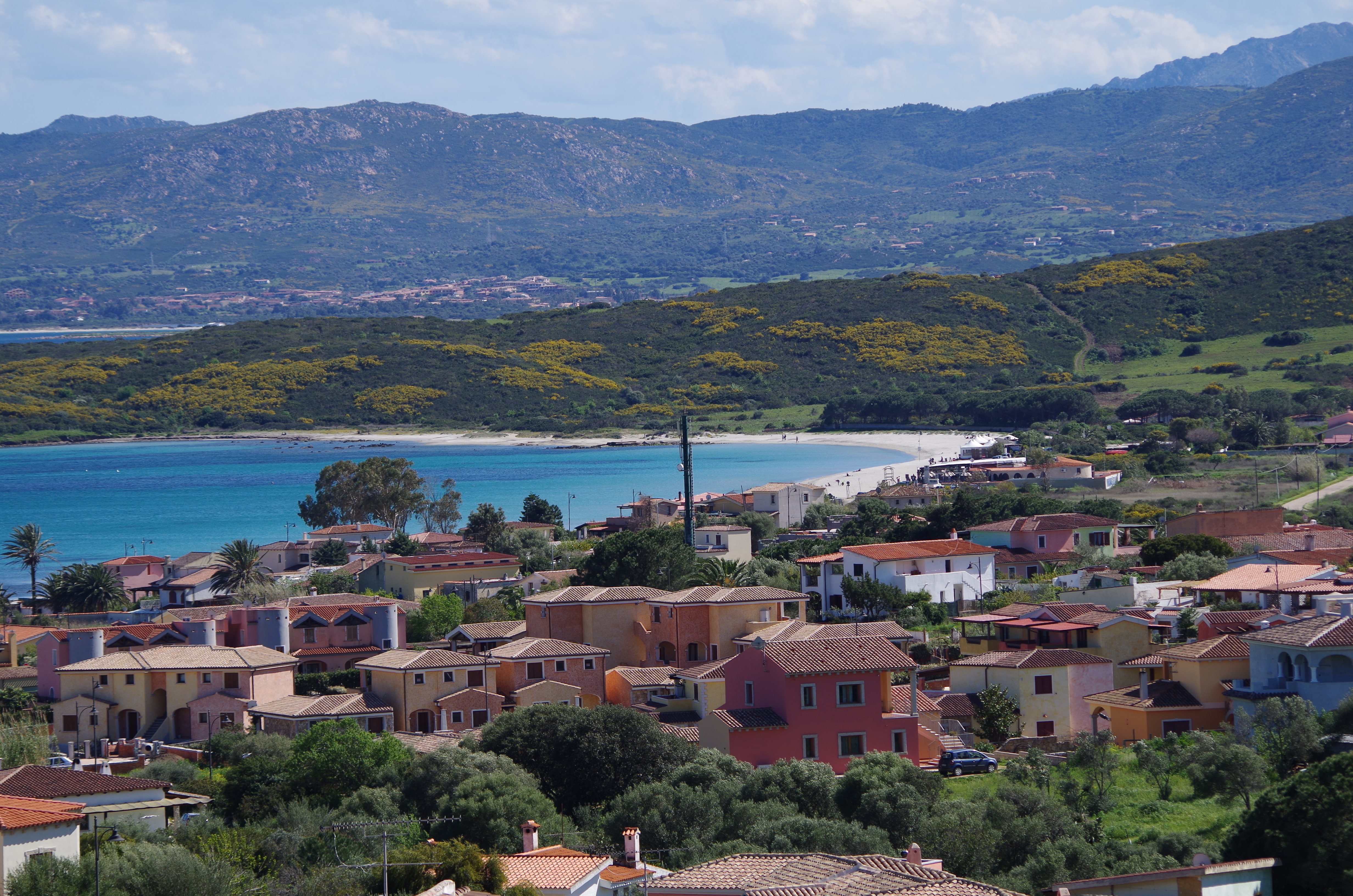 Hügel mit Blick auf Meer, Strand, sowie die Felseninsel "Tavolara"